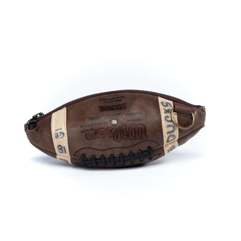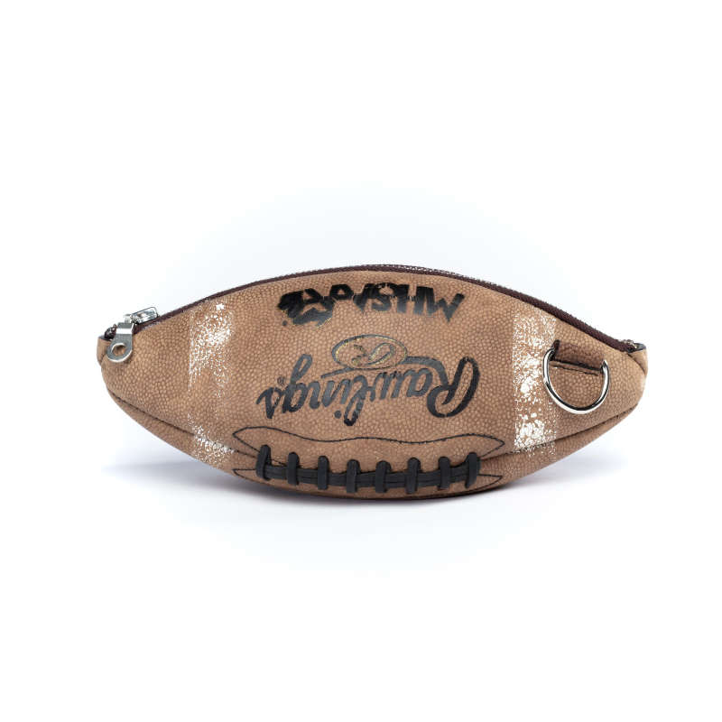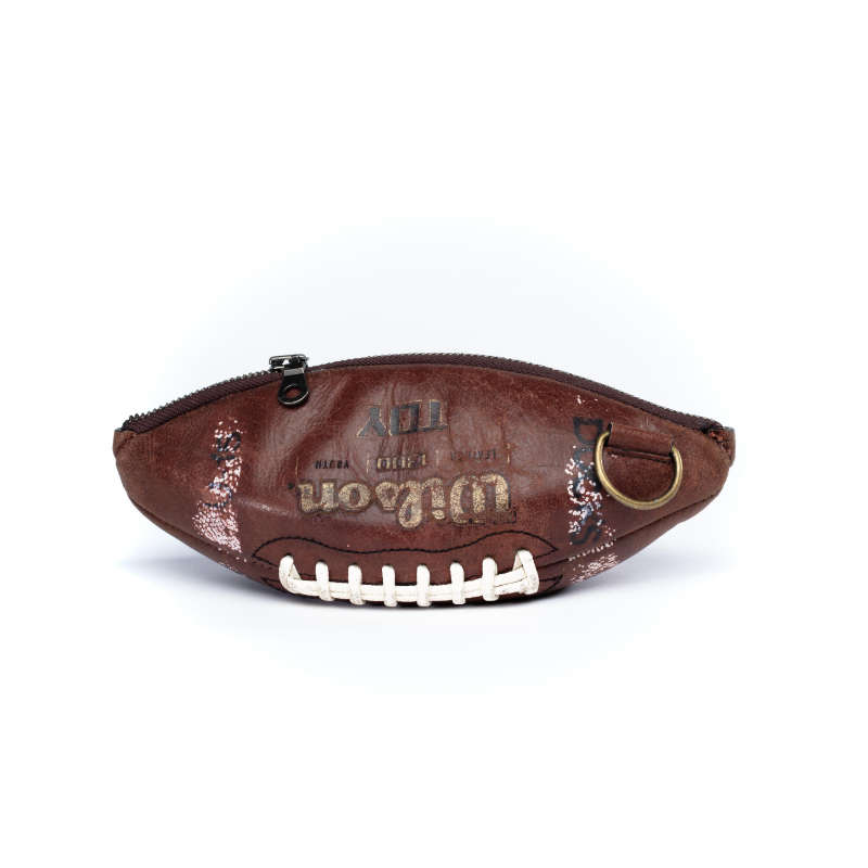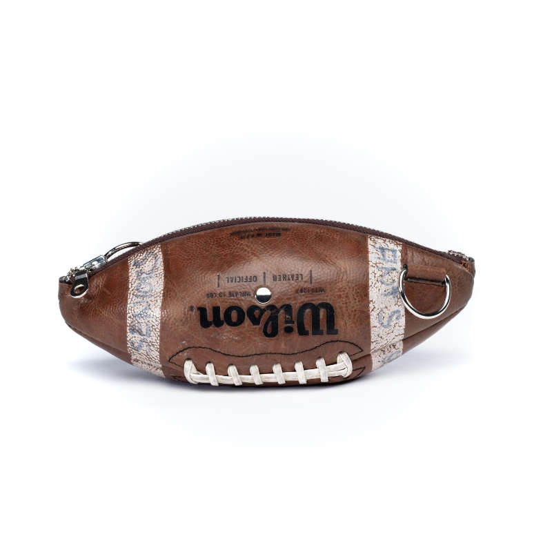 No Ballaurent looks like another. Every piece is unique, just like every football is. Additionally, your bag also will have been made in one of two styles. Either with antique brass metal parts and sand colored inner fabric or silver metal parts and gray fabric.